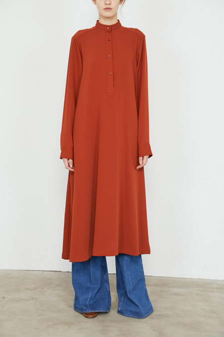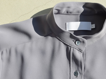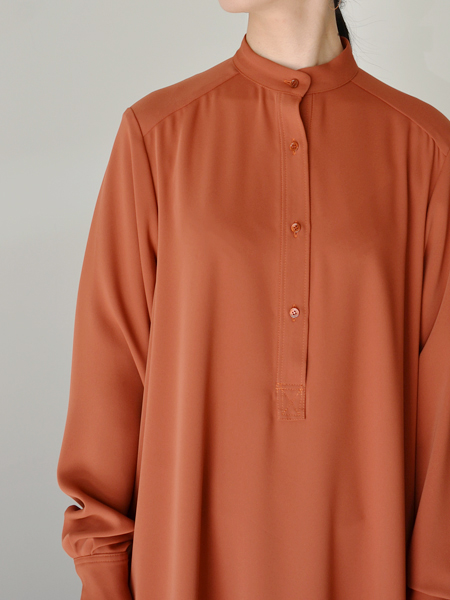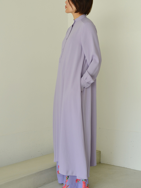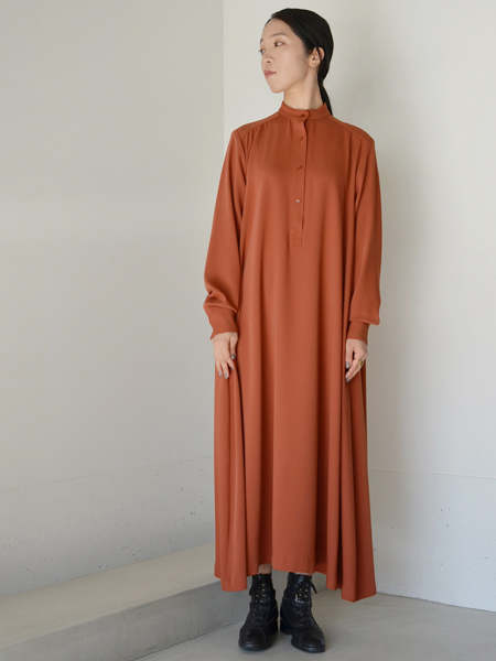 透けにくく、シワになりにくい二重織のサテンを使用したバンドカラードレス。
