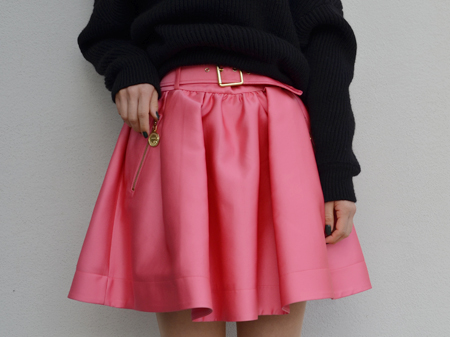 ハリ感のある素材でボリューミーなスカート、光沢のあるピンク色も可愛い!!!