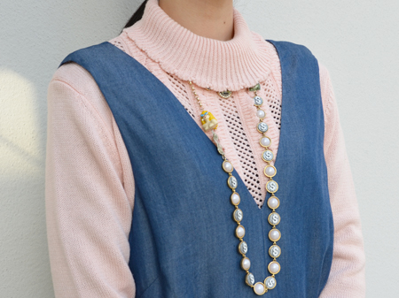 お金モチーフの77thのパールネックレス。