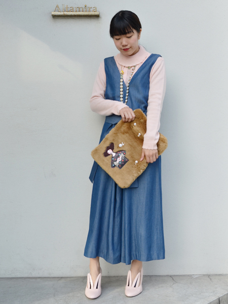 うさぎの耳が遊び心があって、カジュアルなコーデの時などにさらっと履きたいパンプスですね^^