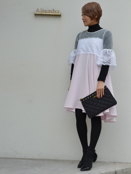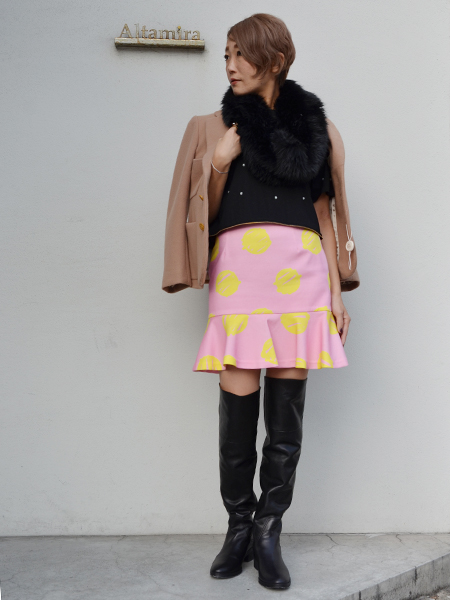 - じわじわとミニ丈のボトムが戻っってきているので、ニーハイブーツを合わせてバランス良く着たいですよね^^