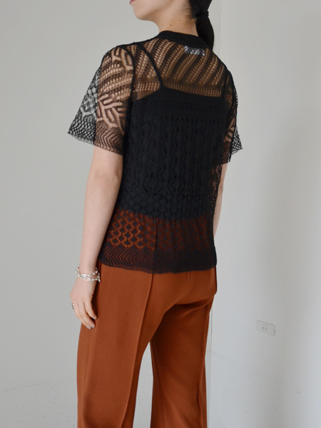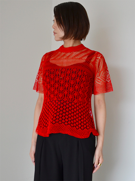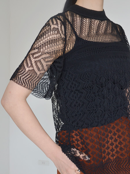 Mame Kurogouchi Net Lace Knit T-Shirt