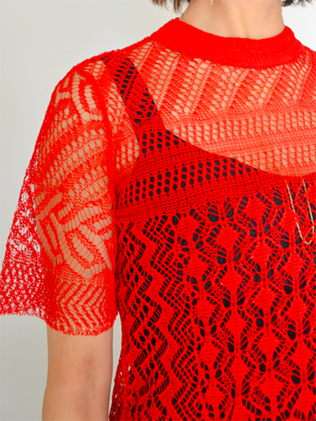 七宝柄や亀甲文様、篭目文様などが入ったネットレースニット。