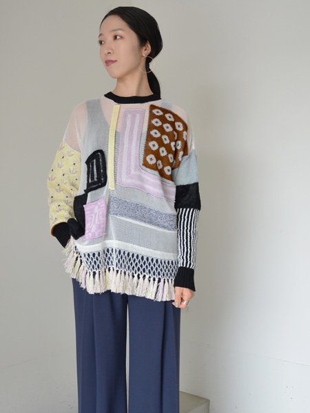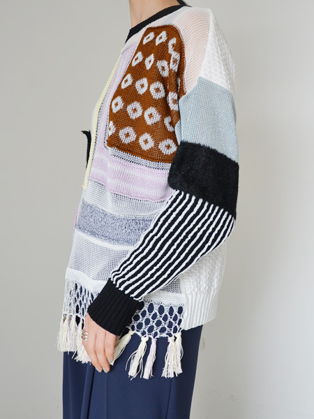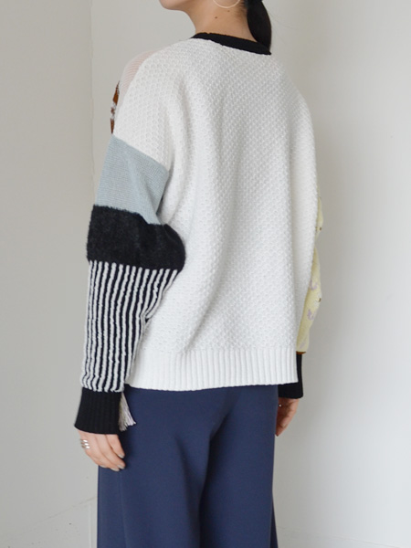 Mame Kurogouchi Patchwork knit Sweater : by mayumi