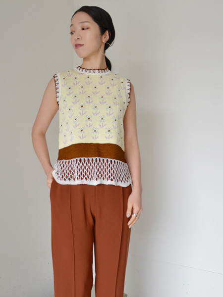 Mame Kurogouchi▶︎Sleeveless flower Knit Tops