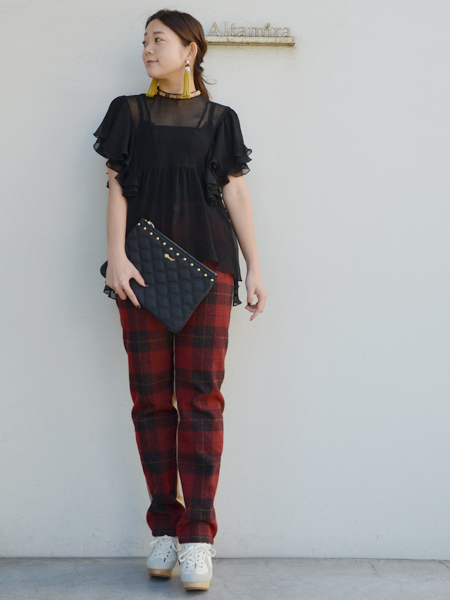 ショート丈なので、ワイドパンツなどのボリュームのあるボトムとも合わせやすいですよ♡
