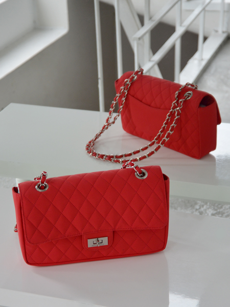 もう一つのキルティング加工の上品なバッグはコーデのポイントになる鮮やかな赤が印象的なデザイン。