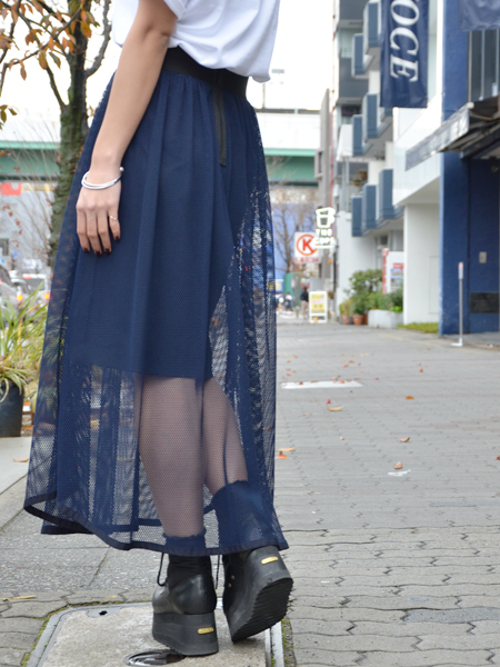 スカート自体はブラックですが、メッシュはネイビーなので重くなりすぎないところもお気に入りポイント^^