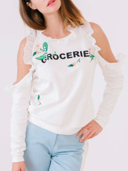 胸元の、スパンコールで刺繍されたキーホールとお花のような形のお袖がすごくかわゆい。