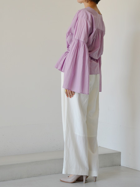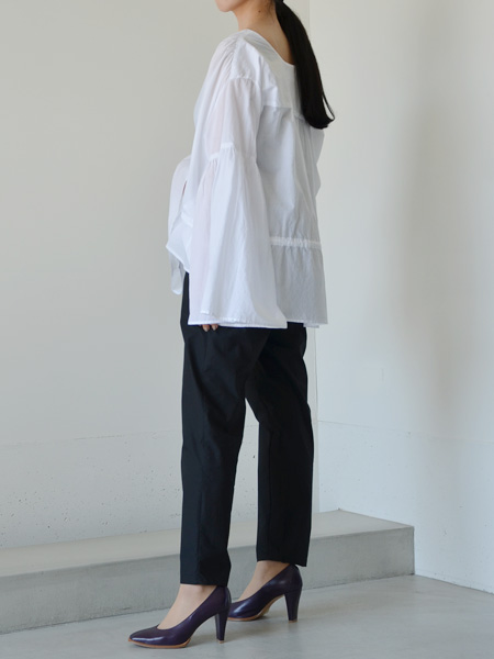 スカートよりもワイドパンツやデニムで合わせたくなるブラウスですね^^