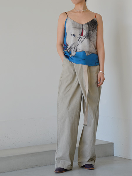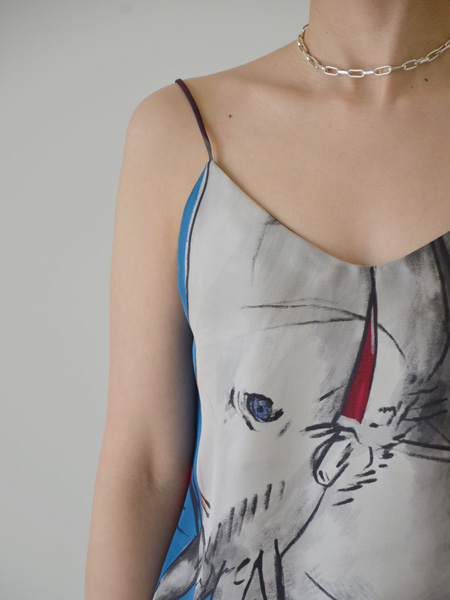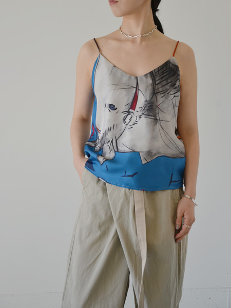 しなやかなシルク生地に手書き風のプリントをのせた、カラフルなキャミソールです。
