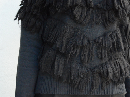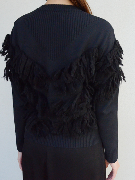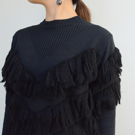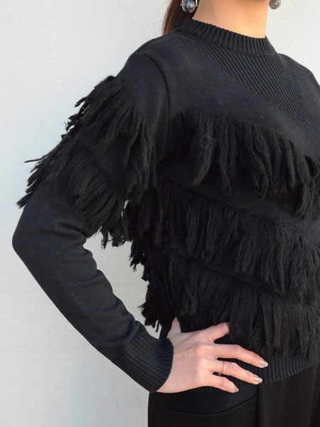ベーシックなニットプルオーバーにたっぷりのフリンジが編みこまれた一枚。