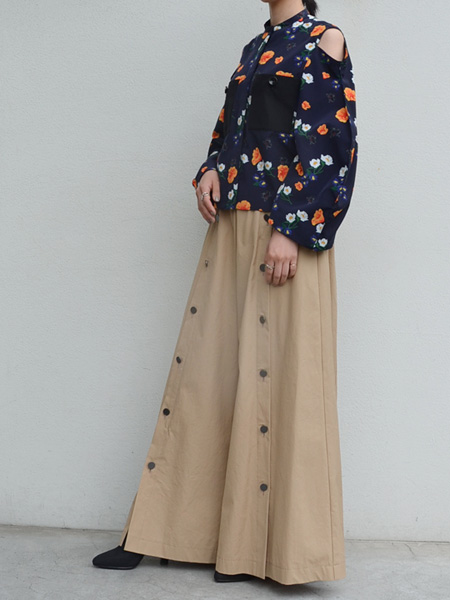 フレアスカートでフェミニンにも。