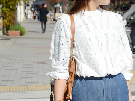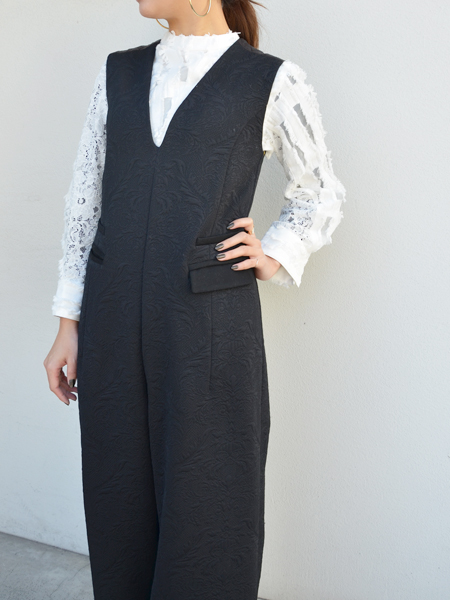 柄と違って、素材での組み合わせであればジャガードとレースの組み合わせもごちゃごちゃしずまとまりのあるコーデに仕上がります。
