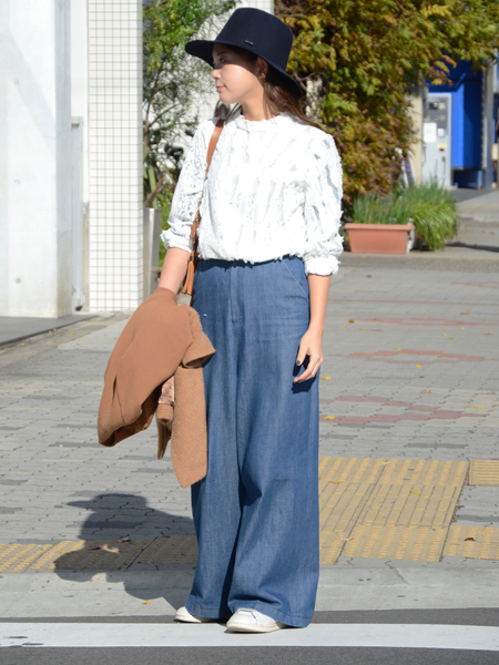 普段はデニムが多いのでワイドパンツでズルッとしたスタイルが好みです^^
