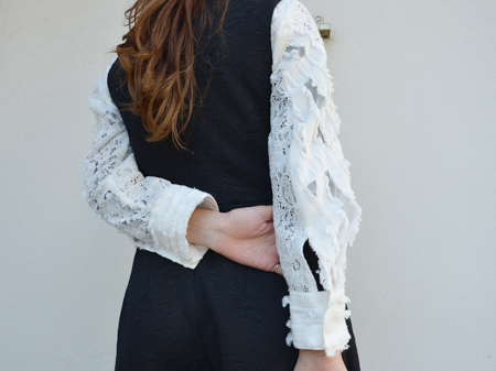 オーガンジーとレースの切り替えでフェミニンなパターンに、