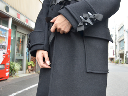 変わりましてこちらは細身のリボンダッフルコート。