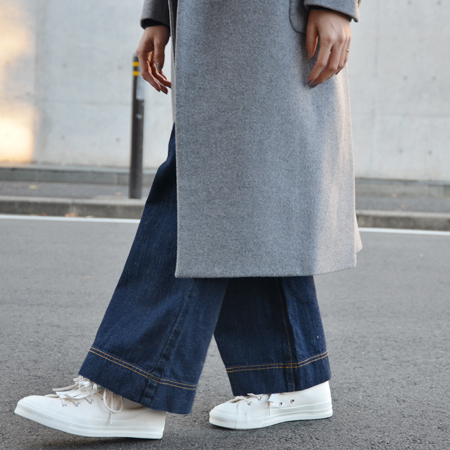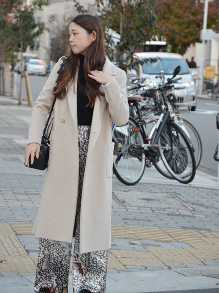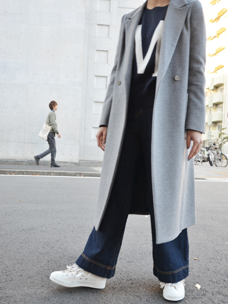 ペタンコのシューズでロングコートを合わせるのって憧れるけど、バランスよく着るのはやはり身長がないと難しいとこのコートを着るまでは思っていました。