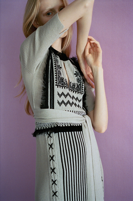 このコレクションを作っている最中、古く美しい生地やレースのアーカイブを見てきた。それは日本から遠く離れた場所でもあったし、雪深い場所でもあった。それらは懐かしく、繊細で儚く美しいものだった。誰かのために作られた美しい生地たちは、自分のクローゼットに入っていたら、明日着たいなと思えるようなものだった。