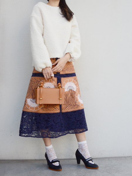 これだけ世界観の詰まったスカート、他のブランドと合わせるのは難しいかしら?と思いましたが、そんなことありませんでしたよ^^