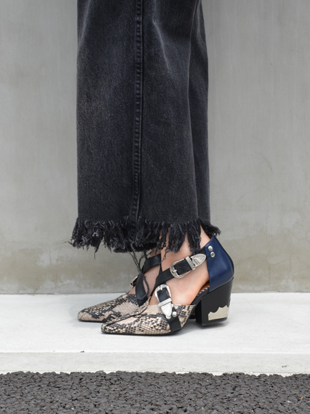 ですがこのサンダルはメタルパーツというTOGAらしい非凡な面と、パイソン柄という2019AWの流行とも言える一面を兼ね備えています。