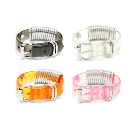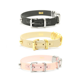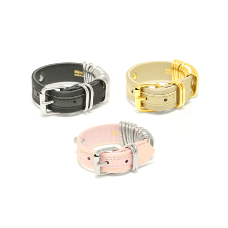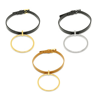 レザーのチョーカーやブレスレットに金属のリングを組み合わせたシリーズ。