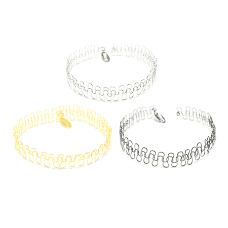 ワイヤーを編んで制作したチョーカーとブレス。