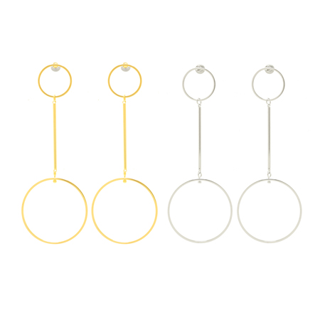 パーティーの飾り付けのようなフープをフープを繋いだデザインのピアス。