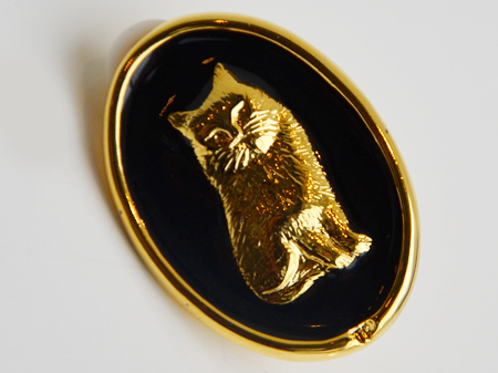 ゴールドに縁取られた楕円の中に、立体的な猫ちゃん。
