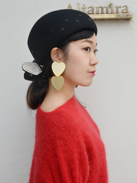 大きなハートのイヤリングなので甘く見えそう、可愛らしくなりすぎてしまいそうと言われますが、甘く見えません。