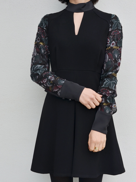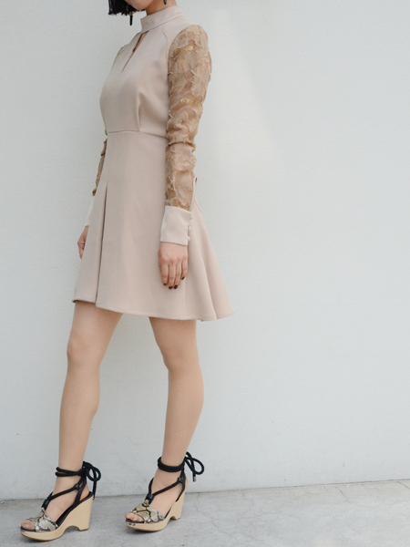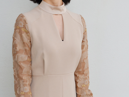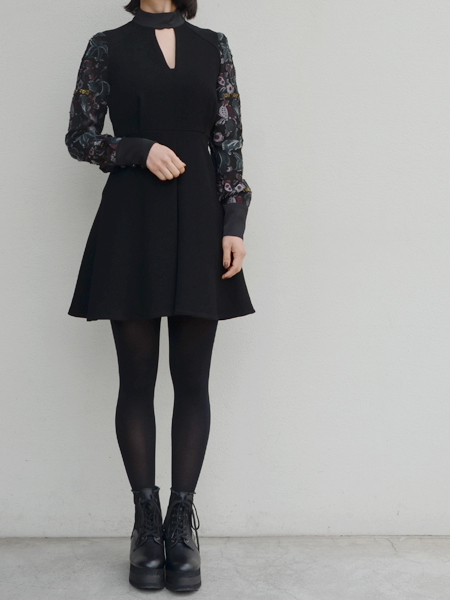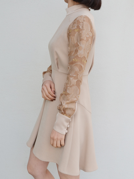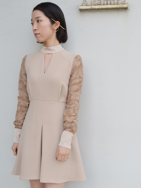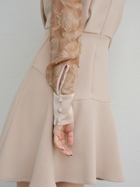 ▶︎▶︎▶︎mame ジャガードレース袖 ミニ丈ドレス