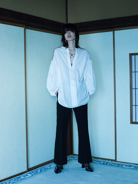▶︎▶︎▶︎MameKurogouchi Tape Embroidered Shirt Tunic