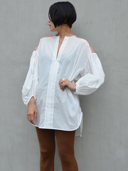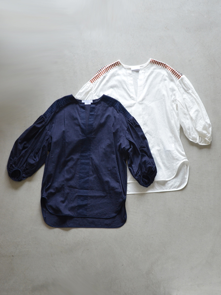 ポワンと丸みのある袖のシルエットが印象的なシャツのご紹介です。