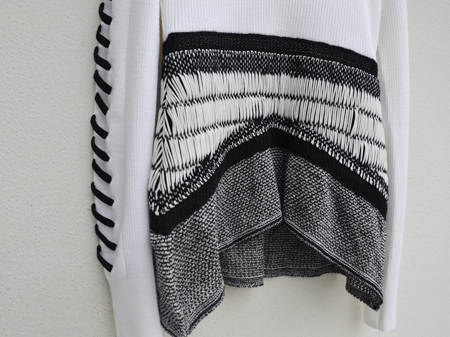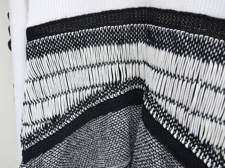 縦に線が入ったように見える白い糸の部分には全て半ループのような編み方になっていて立体的。