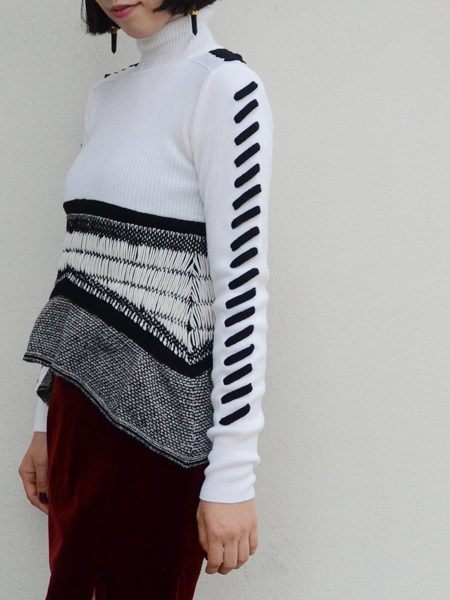 mame タートルネックレースアップニット、Ek Thongprrasert パールイヤカフ by kanda
