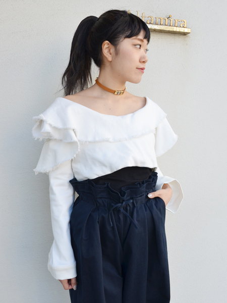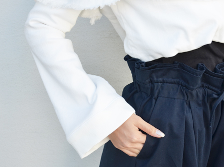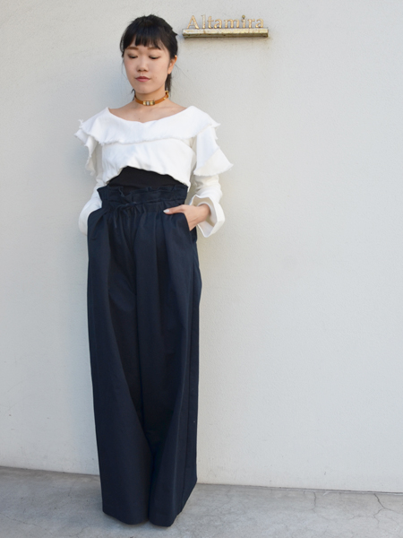 ハイウエストのワイドパンツとのコーディネートがバッチリ決まります。