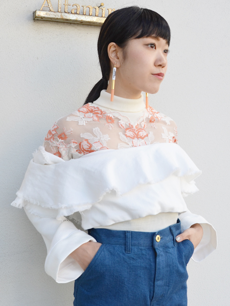 シアタープロダクツのレーストップスを入れたらグッと雰囲気を変えて着ることができました。