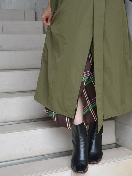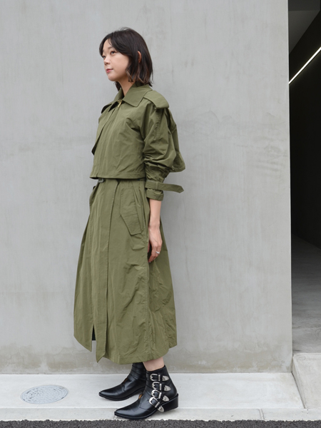 ベルトをキュッと巻いて、ウエストを細くメリハリのあるシルエットに仕上がるのも魅力です。