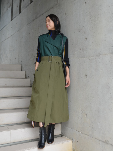 あいみさんはロングベストでは、カラーインナーをレイヤードスタイルが、とっても素敵だったので、スナップをいただきました。
