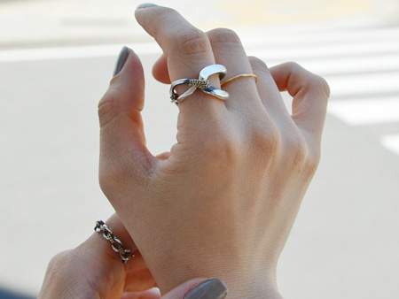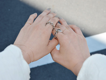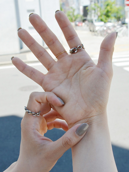 ちなみにこちらの大きい方のリングは付け方によってチェーンの太さが変わるところが面白いです^^