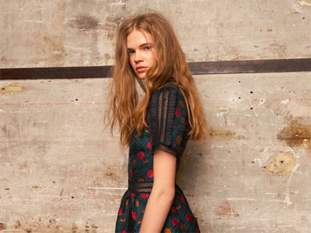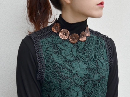 ネックライン、ウエスト部分にはブラウンゴールドの、マーガレットをかたどったレースが並べられていて、これが、ものすごくポイントになって可愛いのです…!