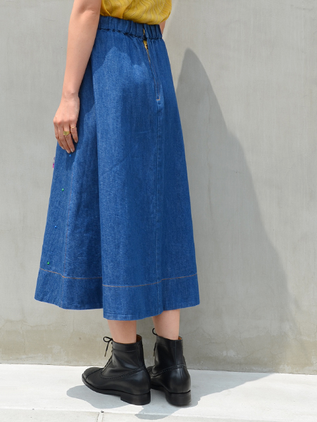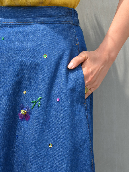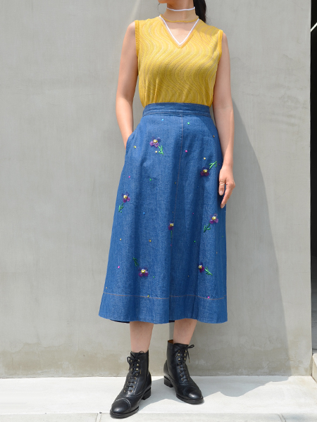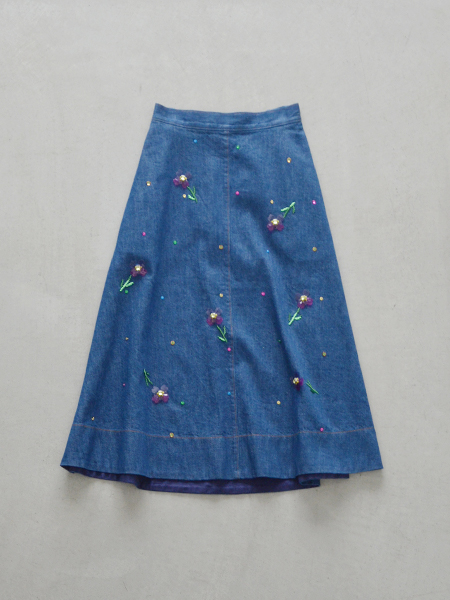 ▶︎▶︎▶︎MUVEIL フラワーモチーフ付デニムスカート