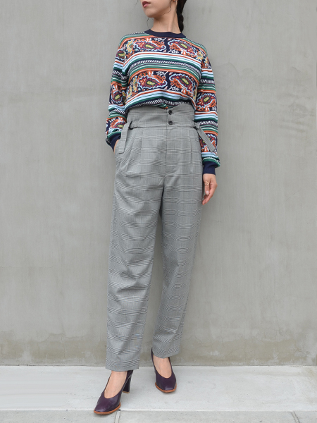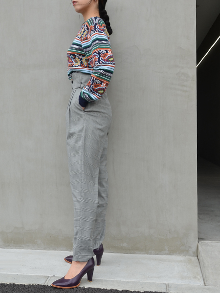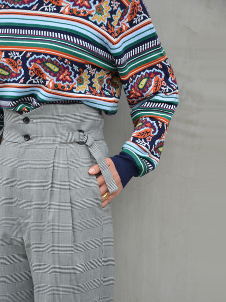 今回はチェックパンツという柄on柄のスタイリングでしたが、チェックパンツの柄が小さいのと、色味に主張がないので成り立ちます。