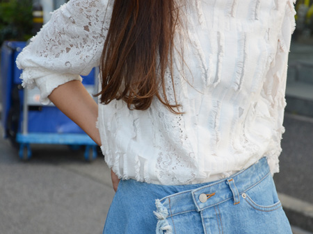 デニム合わせできていたのがすごく可愛くて、今シーズンのCHRISTIAN DADAでオーダーしているレースアップデニムと合わせて着たくて春らしいホワイトを選びました^^