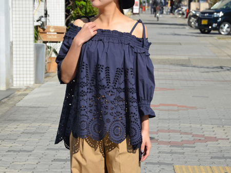 MUVEIL インドシフリー刺繍入りオフショルブラウス