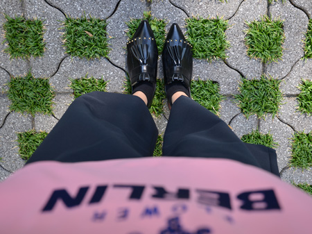 パンツでもスカートでも合わせやすく、何よりヒールないシューズなのに足を綺麗に見せてくれるところに感動してオーダーしました^^