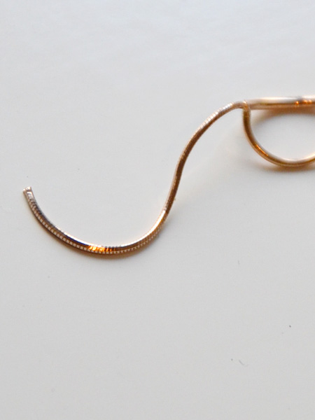 着用した時に、柔らかく揺れるスネークチェーンの部分。