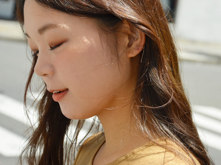 クリップの丸みを帯びた部分を耳たぶの一番薄いところへ持ってきた付け方です。