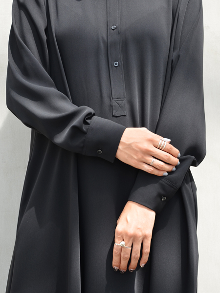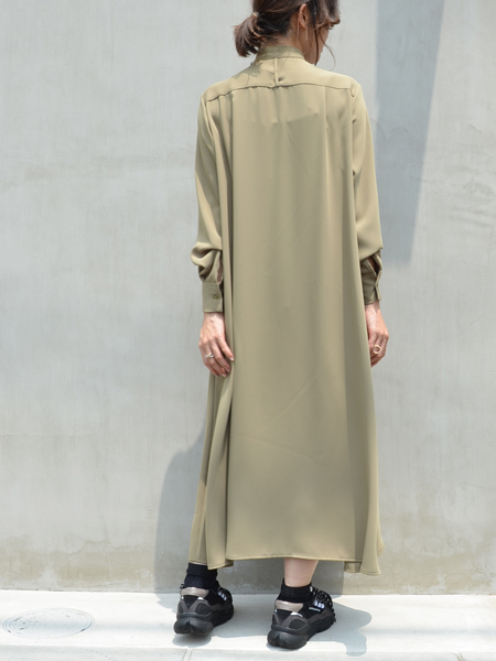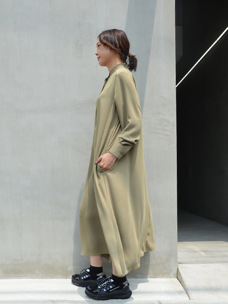 マットな質感で、ほのかなツヤ感、たっぷりの生地を使用した落ち感とドレープ感が上品で美しいワンピースです。