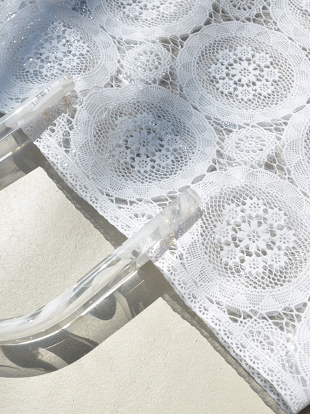 レースの編み目部分はPVC(塩化ビニール)素材になっており、編み地の隙間はないので、細かいものを入れてもすり抜けません。